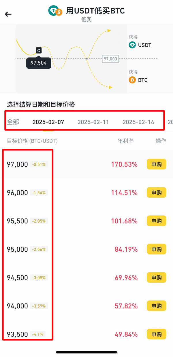 目标价:100,000 USDT | 结算日:5天 | APR:65%