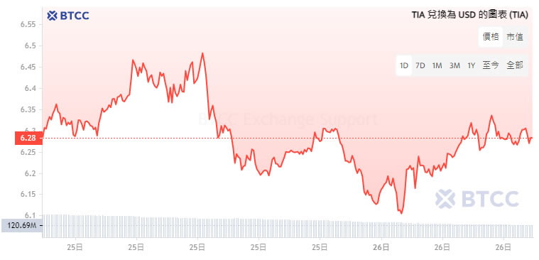 TIA自2023年10月上线以来,价格从2美元最高攀升至20.85美元(2024年2月)。当前报价6.17美元,市值13亿美元,位列加密货币第58位。