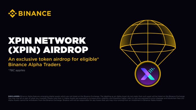 币安Alpha平台将于8月22日首发XPIN Network(XPIN)。持有200以上积分的用户可申领80,000 XPIN代币空投,先到先得。申领将消耗15积分,需在24小时内确认。