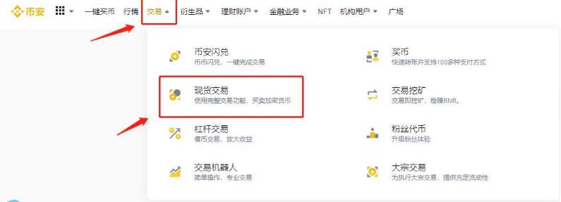 5、登录账户后进入"交易"-"现货交易"功能模块。