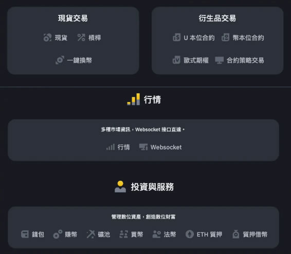 功能全面性:覆盖现货、合约、理财等全品类交易