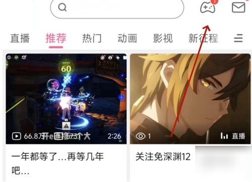 - 打开B站,点击右上角的游戏图标。