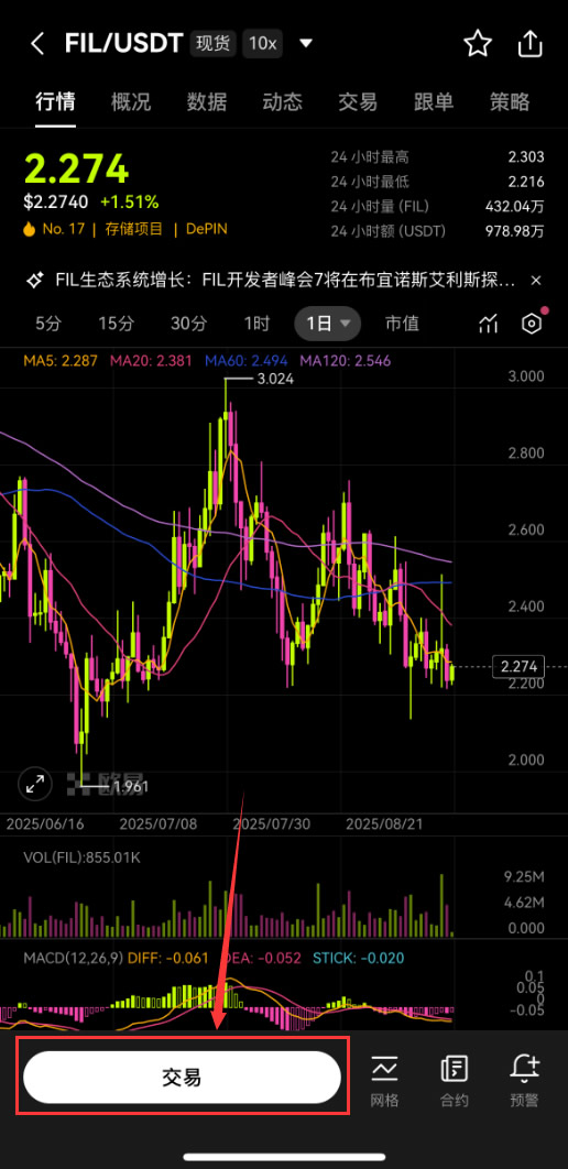 2. 搜索FIL/USDT交易对