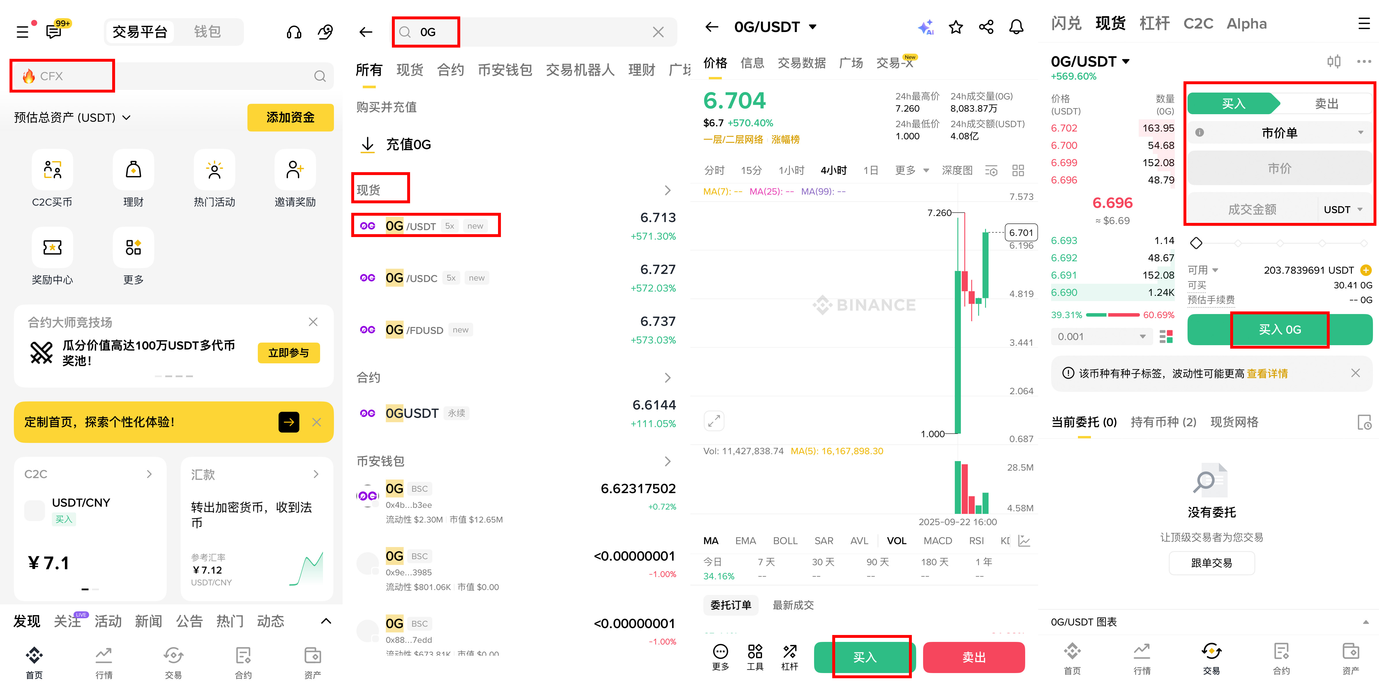 1. 在交易所搜索栏输入"0G"