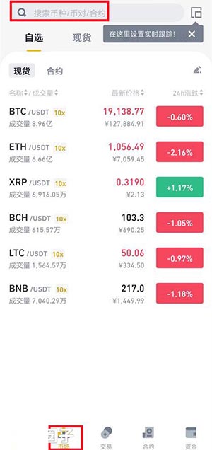 8、进入"市场"页面搜索SHIB,选择SHIB/USDT交易对。