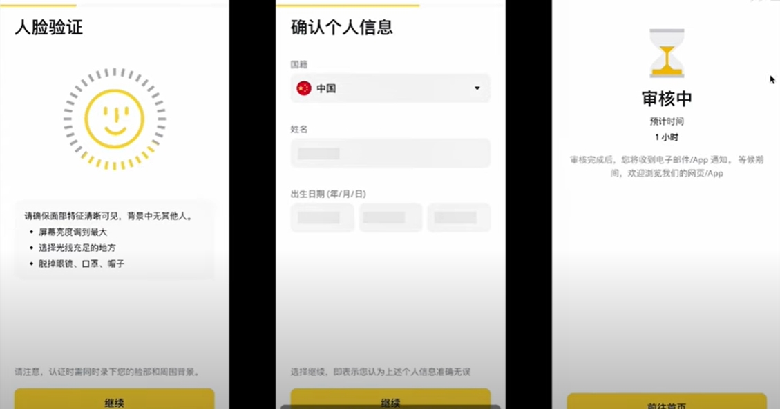 做一下人脸识别,核对个人信息,这样就提交成功了,等他审核。