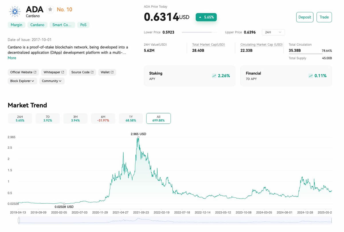 2021年ADA价格曾触及$2.965峰值,当前处于价值洼地阶段。2025年生态复苏迹象明显: