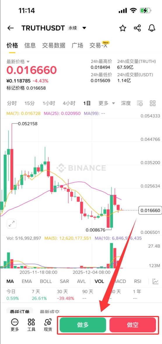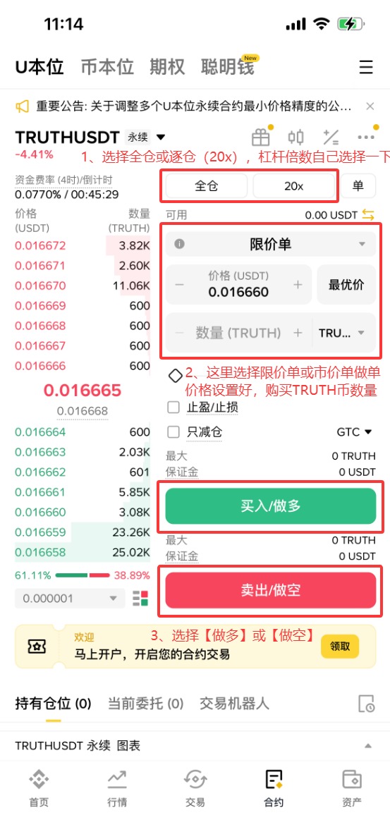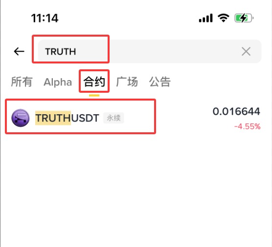 输入TRUTH关键词,在下拉菜单中选择TRUTHUSDT合约
