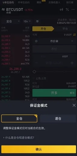 3.设置保证金模式:逐仓(推荐新手)或全仓