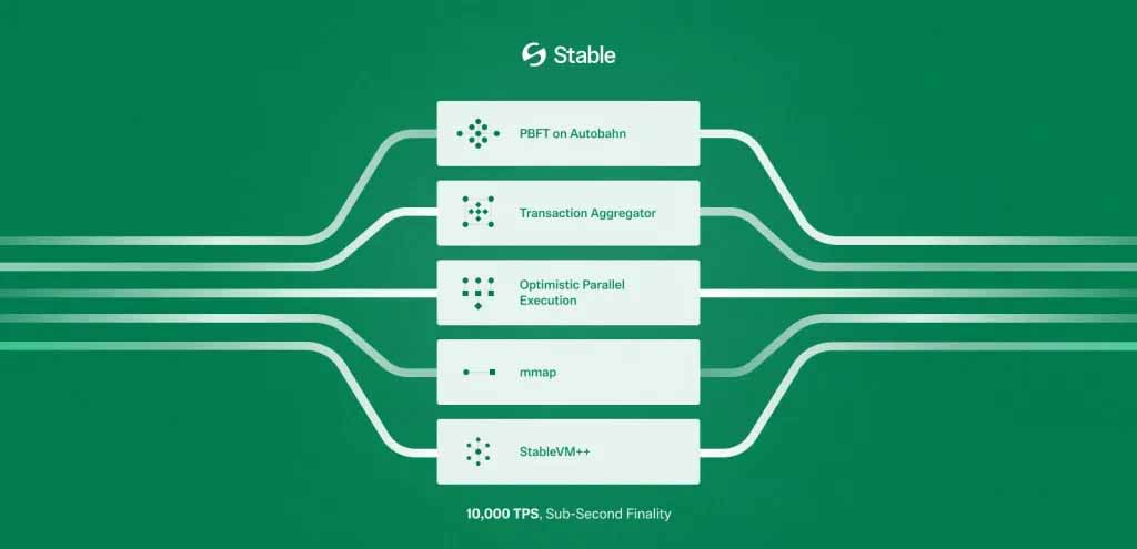 从状态数据库到共识机制,Stable的每项技术组件均针对稳定币支付优化,实现高吞吐与可靠运行。