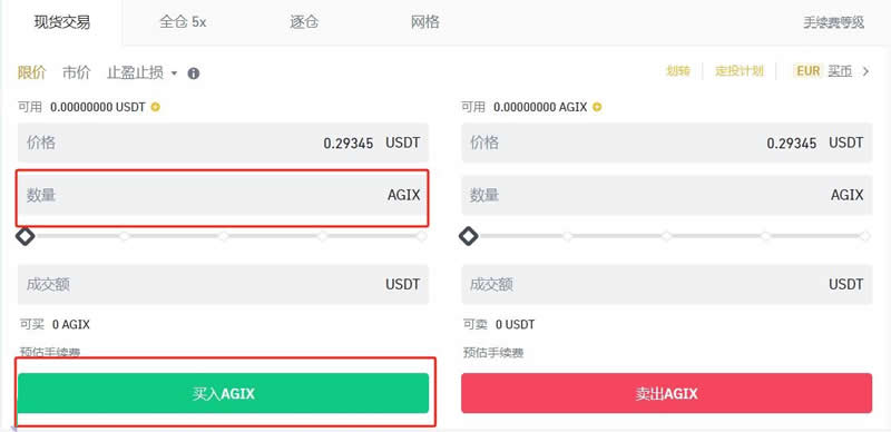 8.输入购买数量,确认后点击【买入AGIX】完成交易
