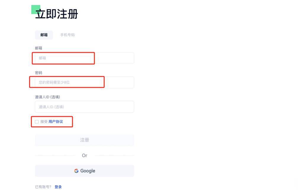 2.按要求填写邮箱、密码等基本信息,阅读并同意用户协议后提交注册