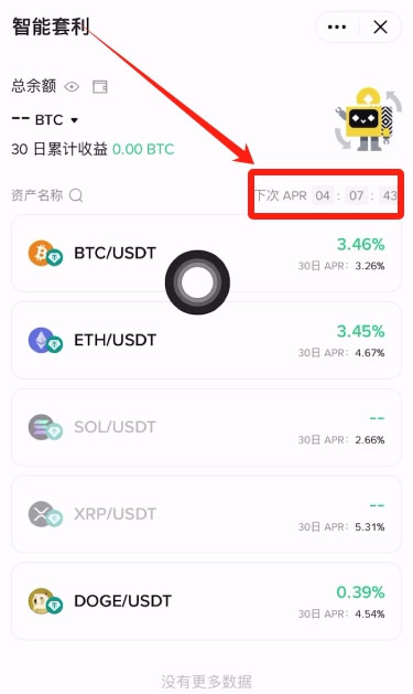 假设你投入1000 USDT 到BTC/USDT 智能套利中,系统会自动帮你: