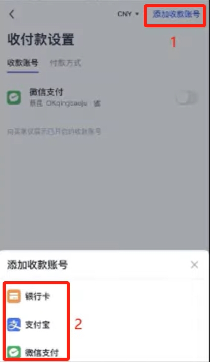 然后添加自己的收款方式,添加支付宝和微信收款方式。