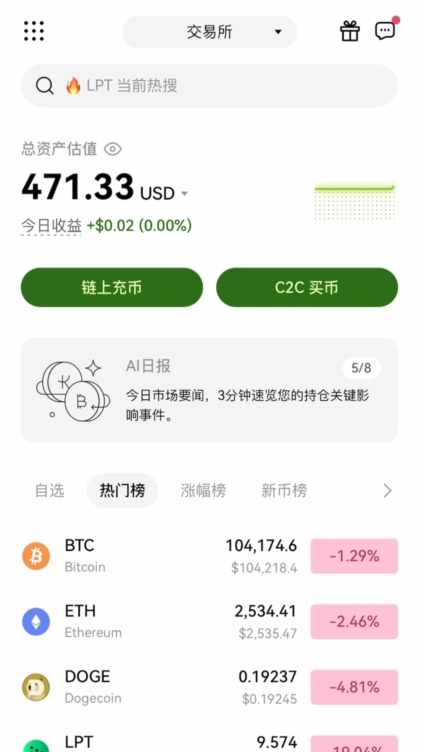 提供现货、合约、理财、挖旷等多样的服务。