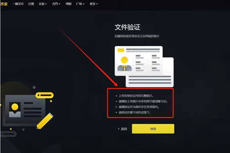 再往下就是要验证证件信息了。这里有摄像头拍摄、上传照片、通过币安APP验证,如果你是笔记本或者说是你电脑有摄像头的话,你就可以选择第一个和第二个进行认证。因为它最后会有一个视频验证人脸,如果你没有摄像头就认证不了。我这里就不尽心过认证了。