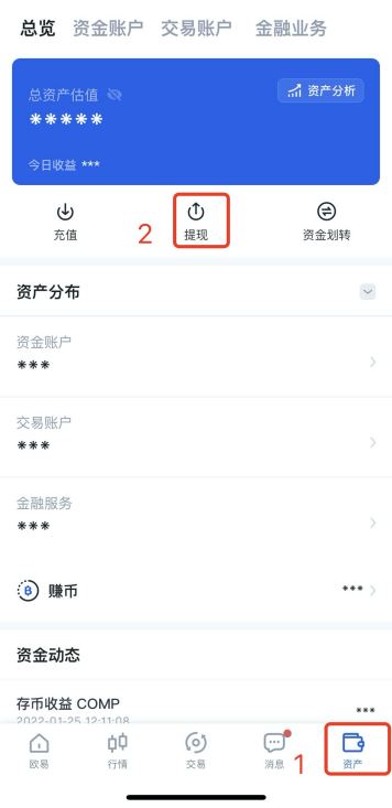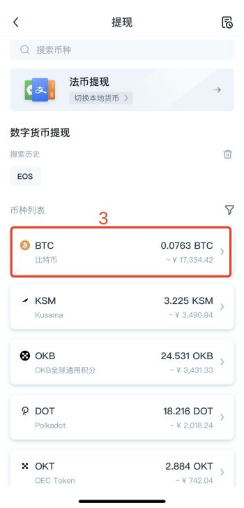 1、通过APP首页【资产】-【提现】进入操作界面,选择BTC币种。