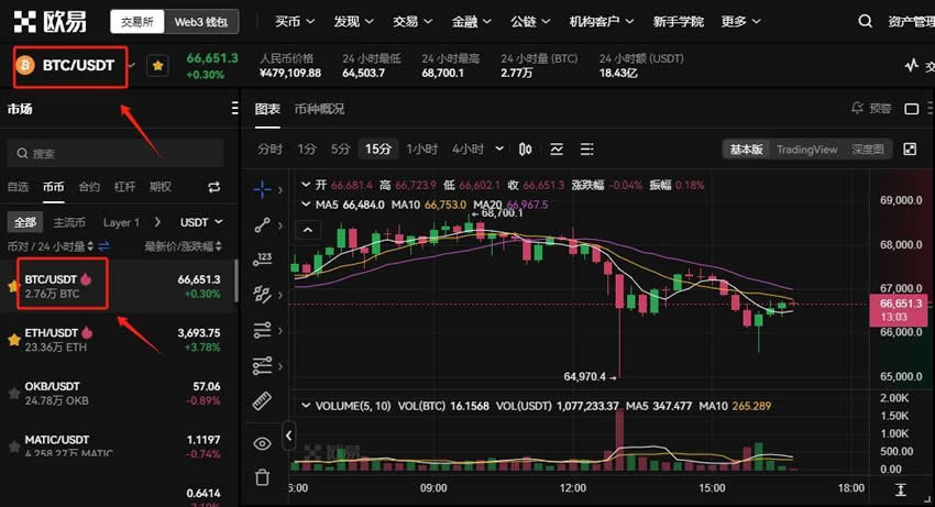 币币交易卖出还是很简单的,下文是在欧易交易所进行BTC卖出教程: