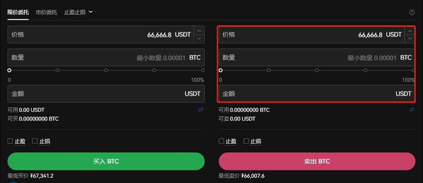 8、输入卖出数量,点击卖出即可(注意:BTC最小交易数量为0.00001BTC)