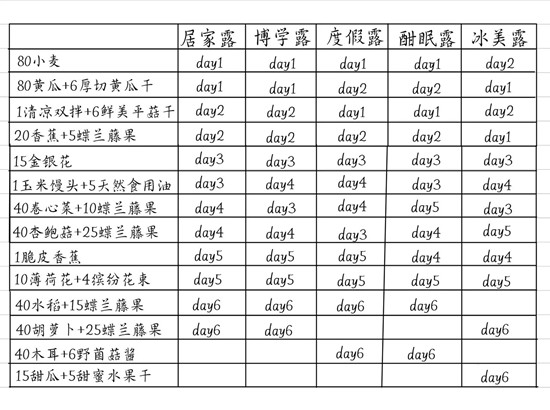 day2的需要的材料类型和day1一样,正好两天需要准备四类材料,提交五个露比,一共20个订单