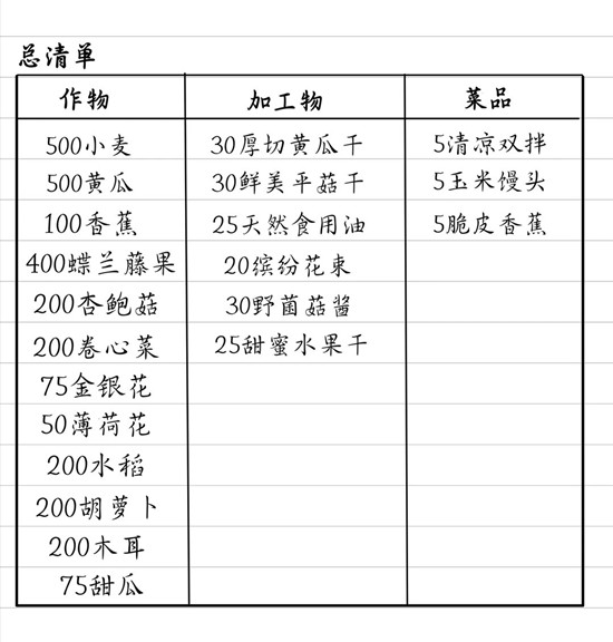 相比之前的农活,这次光头有条理多啦,大家只要在两天内把材料准备好,压力相比之前小很多