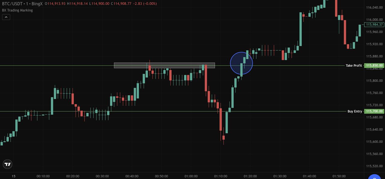 例如,如果BTC/USDT在一分钟图表上从115,700美元移动到115,850美元,剥头皮交易者可能在115,700美元买入,并在几秒钟后以115,850美元退出,捕捉150美元的波动。虽然每笔交易的利润很小,但在众多交易中重复这个过程可以创建稳定的回报。