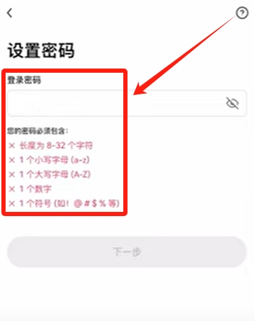 设置包含大小写字母、数字及特殊符号的高强度密码完成账户创建。