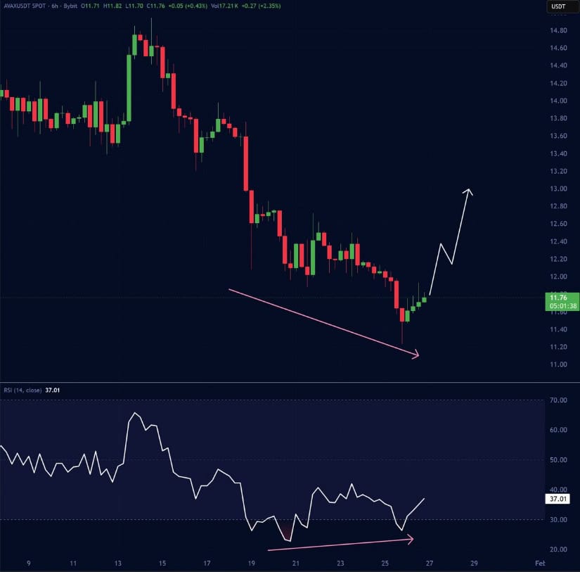 AVAX在11.40美元附近呈现RSI看涨背离,暗示抛压减弱,为重返13-15美元区域奠定基础。来源:Jesse Peralta via X