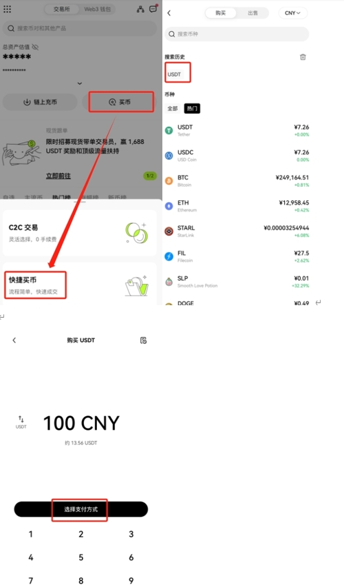 建议新手从购买USDT开始,这种稳定币可作为交易其他数字货币的基础。在APP内选择快捷买币功能,支持多种主流支付方式完成充值。