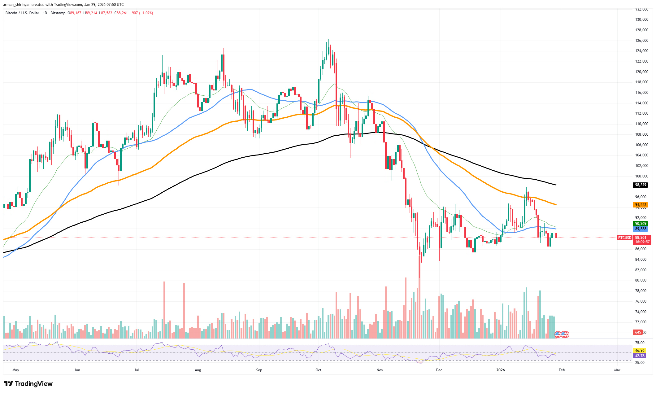 平仓引发的血洗通常带来市场重置而非终结。当过度杠杆被清洗后,波动率往往会在新趋势前收缩。风险在于:若支撑位崩塌,将引发平仓连锁反应。比特币当前关键区间位于86,000至88,000美元之间。