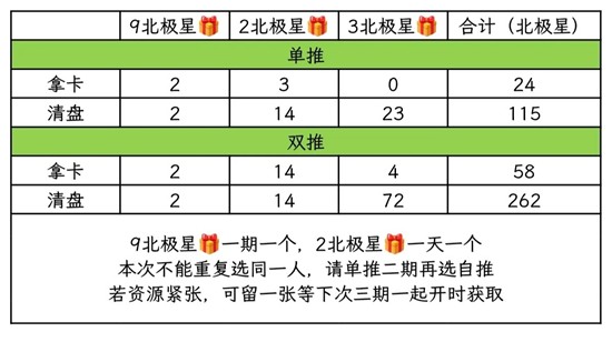 单推清盘及双推拿卡or清盘,请注意不要忘记每日2北极星