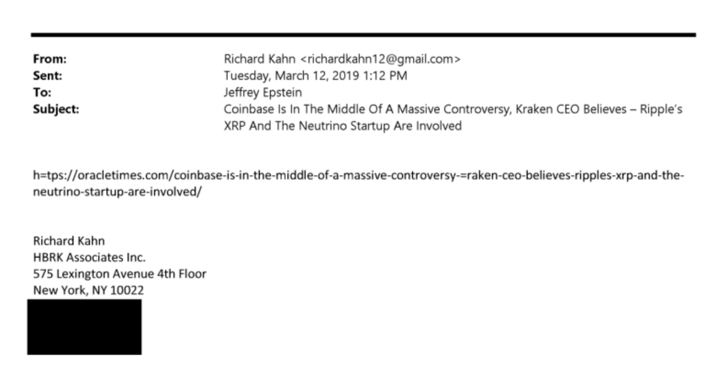 这封邮件是新披露文件中多个加密行业关联内容之一。