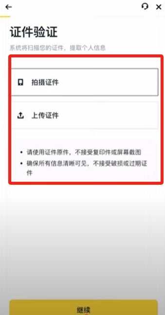 1. 选择证件类型并上传清晰照片