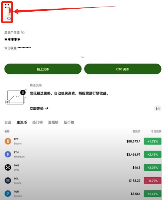 查看手续费标准需先点击APP首页左上角菜单图标,进入个人账户页面后选择手续费等级选项。