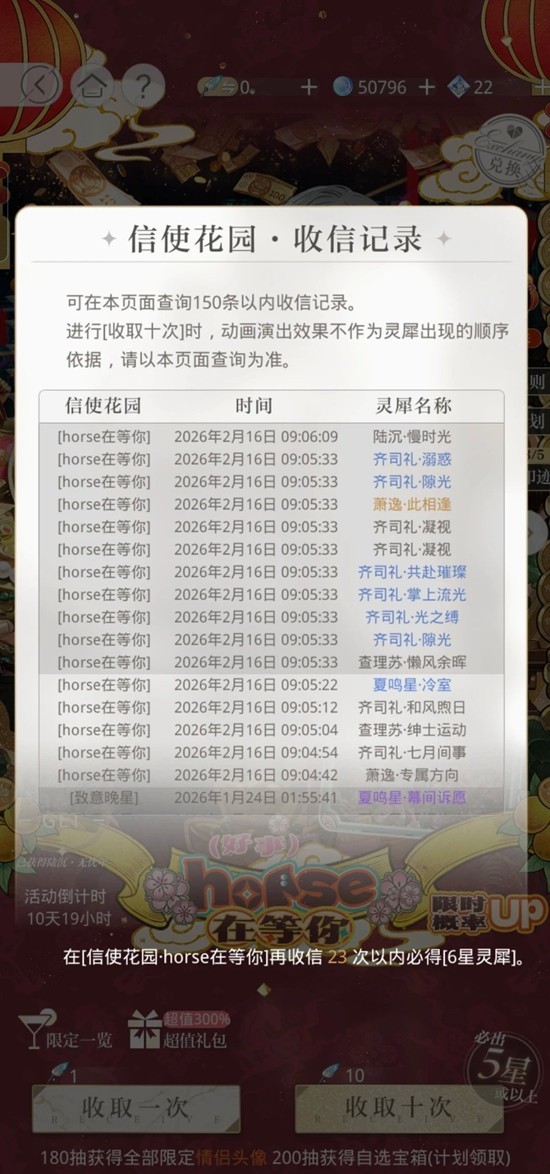 光与夜之恋春节卡池2026 春节「horse 在等你」卡池100 抽保底随机六星、200 抽可自选。活动送52 + 抽免费道具,140 书简可换卡。卡面精美、福利丰厚,是春节必冲限定混池。那么这一卡池怎么抽呢?为你准备了一份攻略,一起来看看吧~