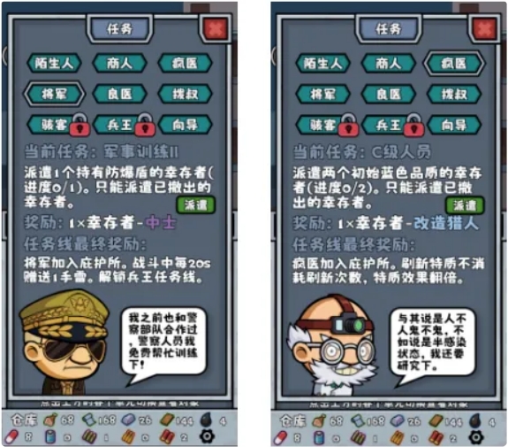 这些任务当中要注意“将军”和“疯医”的