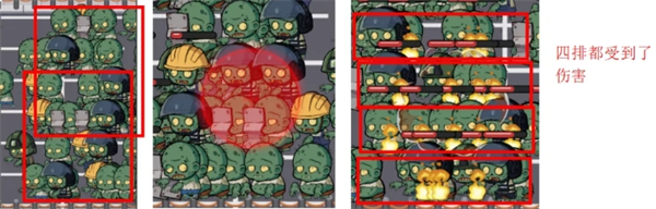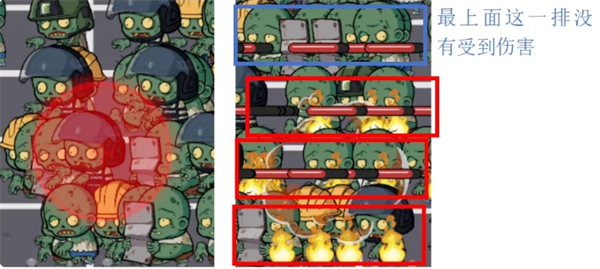否则就只能烧到3排僵尸: