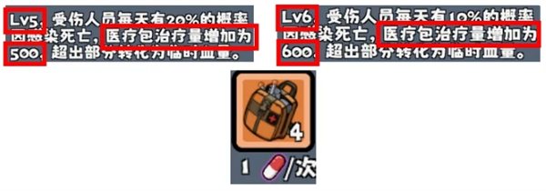 升级庇护所中的“医疗处”可以提高医疗包的治疗效果