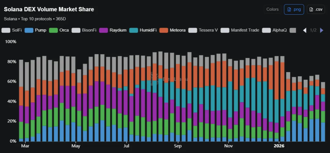 在 Solana 生态中,围绕流动性与订单流的竞争正在持续升温。除了 Meteora 之外,DeFiTuna 与 HumidiFi 正在以截然不同的路径争夺市场份额。前者强调产品结构与功能创新,试图以更复杂的链上交易工具吸引专业用户;后者则采取“Prop AMM”模式,通过内部资本高效周转与深度路由整合,在执行质量与交易效率上建立优势。