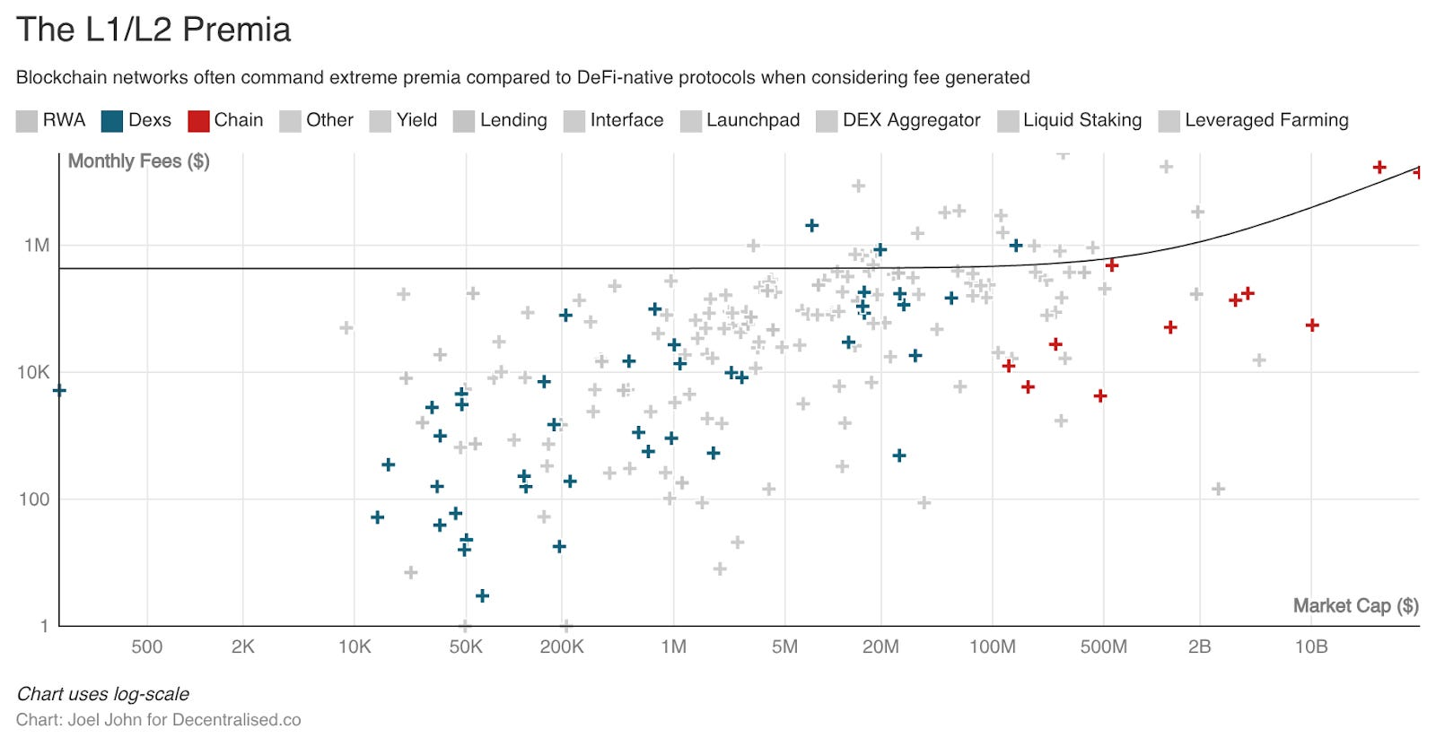 尽管总体 170 倍的市销率数字看起来很疯狂,但市场对真正产生收入的协议并非不理性。它的定价等于或低于传统的经济基础设施。