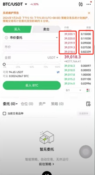 如果你现在就想买就选择【市价委托】。市价就是,如果你是买就把红色的报价部分从低往高买。比如说你想买1颗比特币,它的报价数量不足1颗的话,系统就会一次性的从下往上帮你买上去。当前的市场价也就理所当然的会被你推高了。