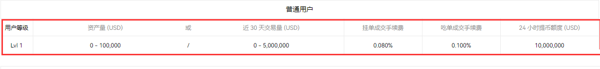 具体分级如下表所示(交易量统计周期为30天,单位为平台计价货币):