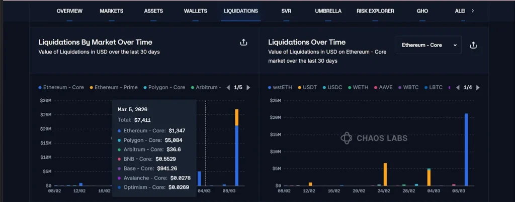 一旦这些仓位跌破安全阈值,Aave的清算引擎便自动执行平仓。这在整个平台引发连锁清算反应,数小时内数千万美元杠杆仓位被强制清零。