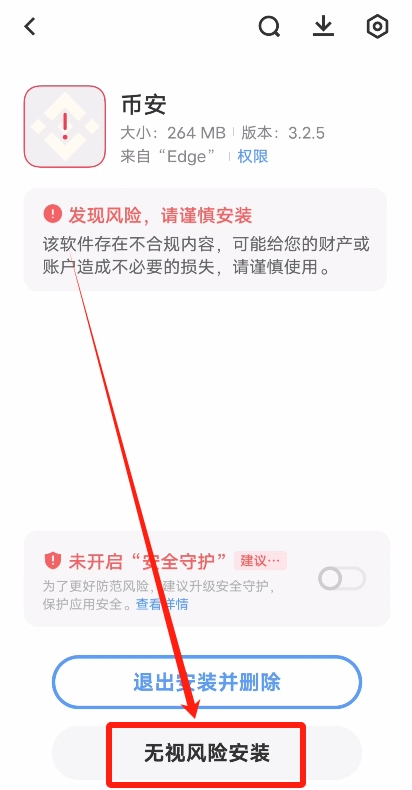 下载完成后需允许本次安装,虽然系统可能提示风险,但确认是从官网下载的正版应用后可安全安装。