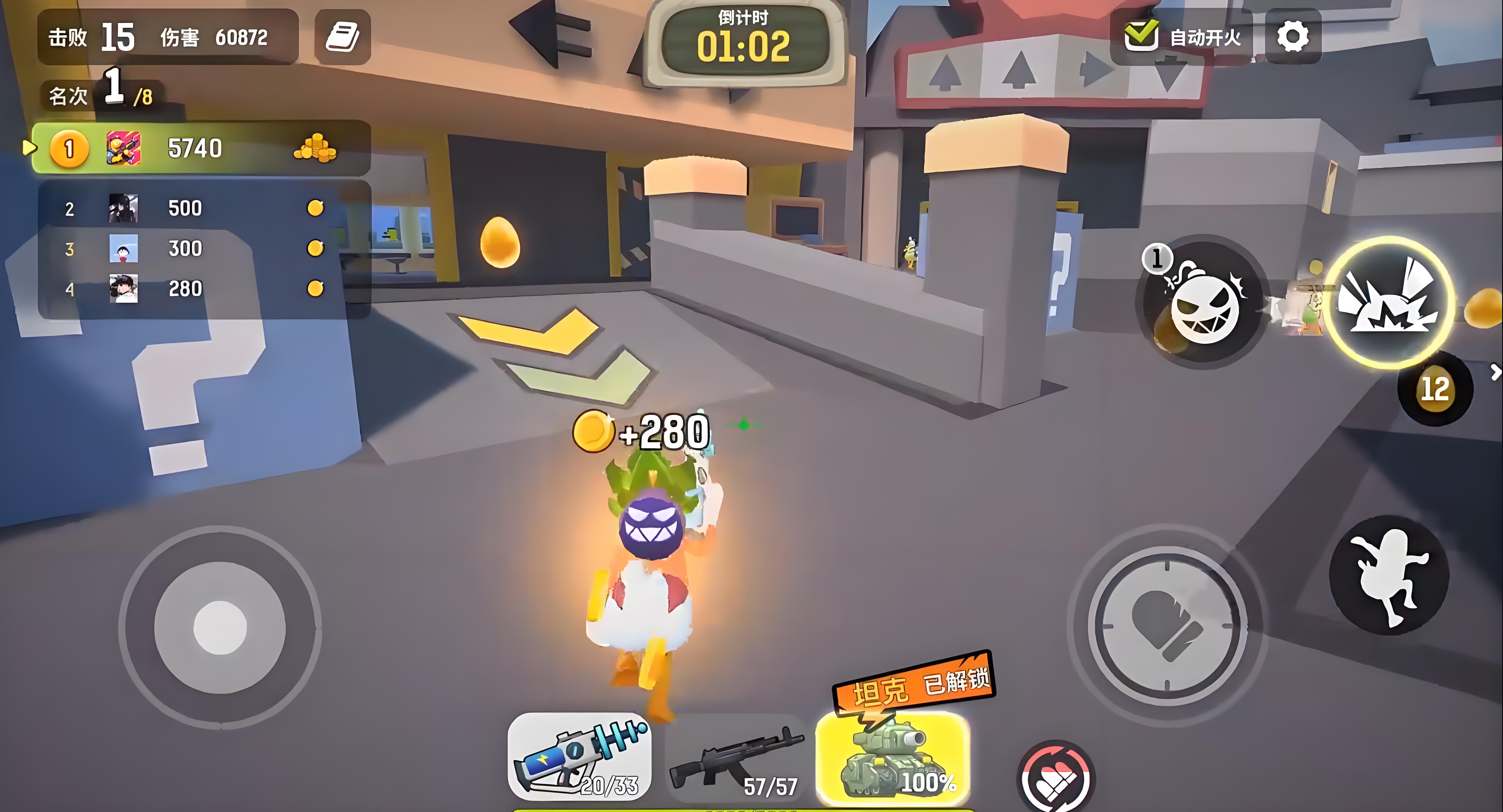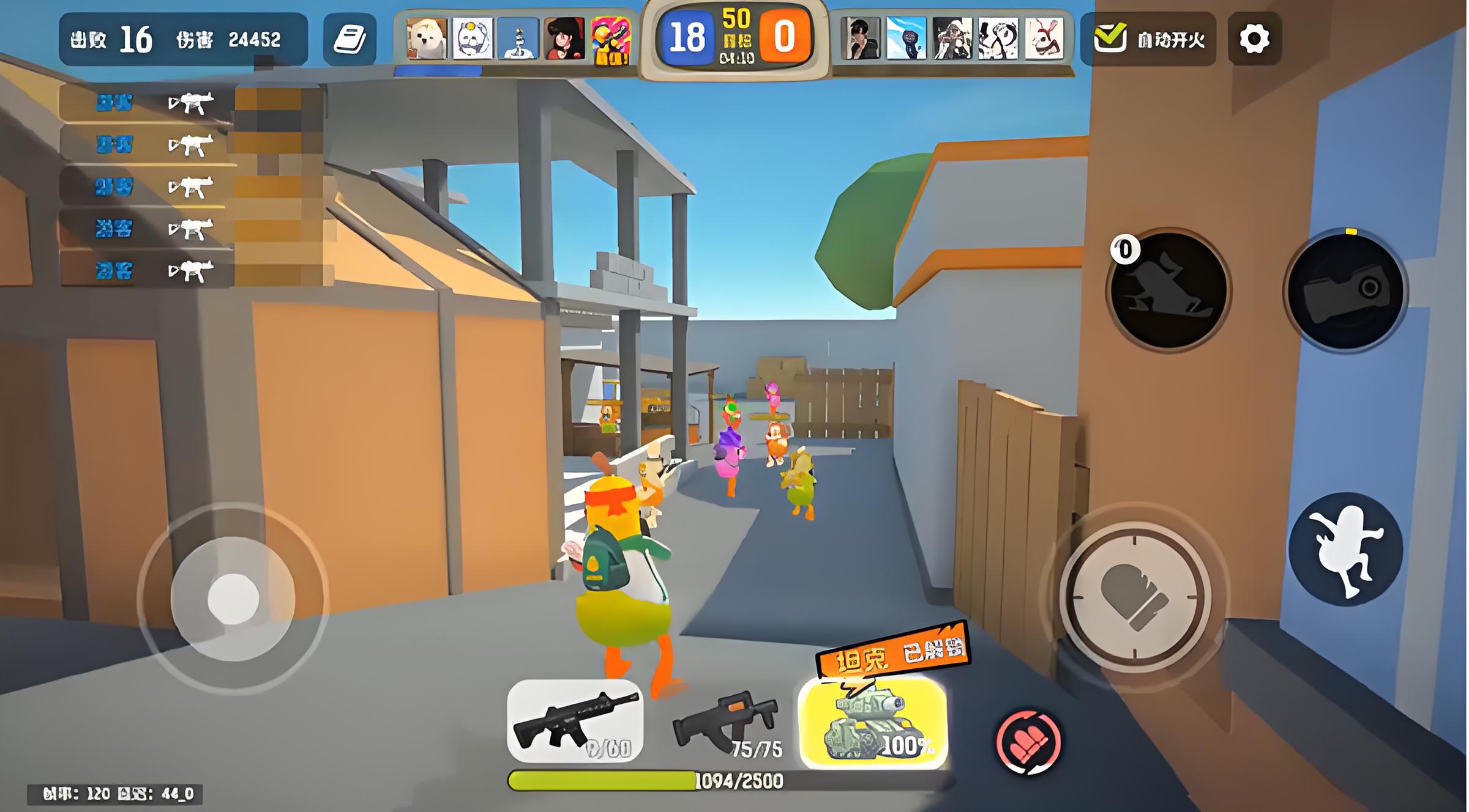 区别于传统硬核拟真向射击作品,《嘎嘎射击》采用第三人称视角(TPS),主打低门槛、高反馈的娱乐化对战体验。游戏地图设定为结构多变的3D立体盒子场景,支持4人同图自由探索与实时交火。角色阵营由多种拟人化动物构成,每名选手拥有差异化技能定位;战场中随机刷新手枪、地雷、坦克等多样化载具与武器,强调临场策略搭配与即兴操作。