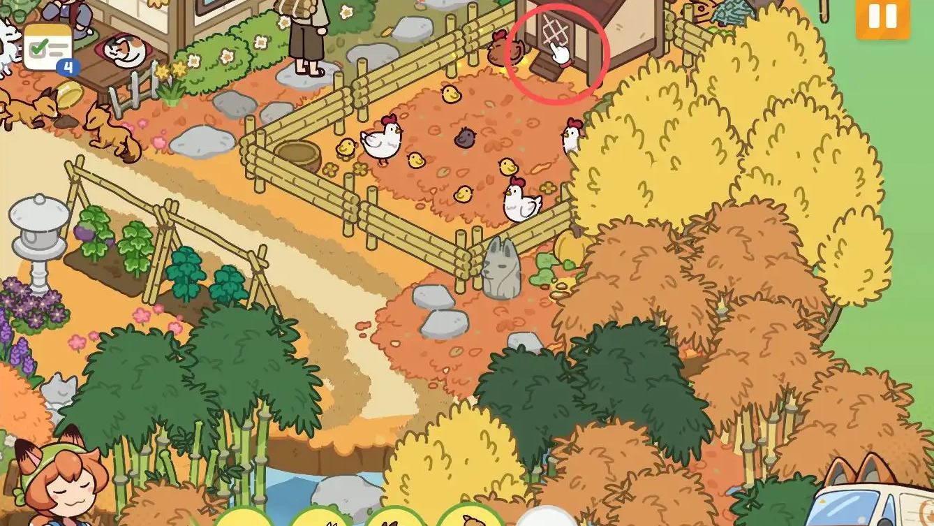 8、点开小房子右边鸡窝的门就会跳出来,先点鸡窝的门然后就跳出来了