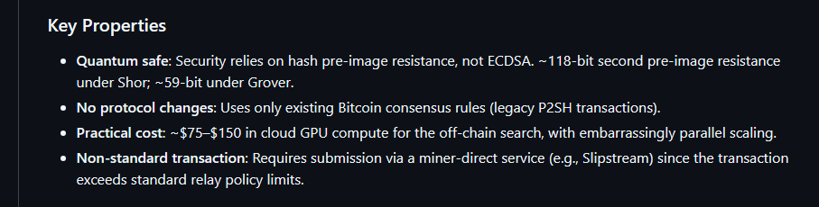简言之,发送方必须找到一个哈希输出恰好类似有效ECDSA签名的输入值,这个过程依赖暴力计算而非量子计算机可能破解的数学算法。