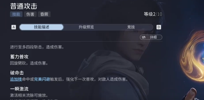 “流冲枪”是该体系的关键突进与控场技能,施放后向指定方向突刺并命中首个敌人,造成物理伤害;若在技能连接状态下再次操作,可将目标击飞并施加硬直效果,同时叠加额外伤害。该技能存在累积机制:同一目标累计承受10次流冲枪伤害后,其受到的后续原初之流伤害将获得提升,形成越战越强的压制循环。能量槽满额时,可发动终结技——向前挥出大范围强力斩击,瞬间爆发高额物理伤害。