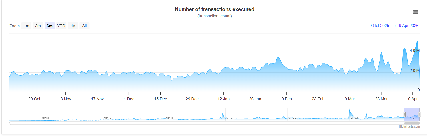 XRP正隐秘上演着市场最蹊跷的背离现象:底层网络活跃度攀升至不容忽视的水平,而价格走势却持续低迷。数据显示XRP账本交易量已达历史第二峰值,但币价几乎毫无反应。