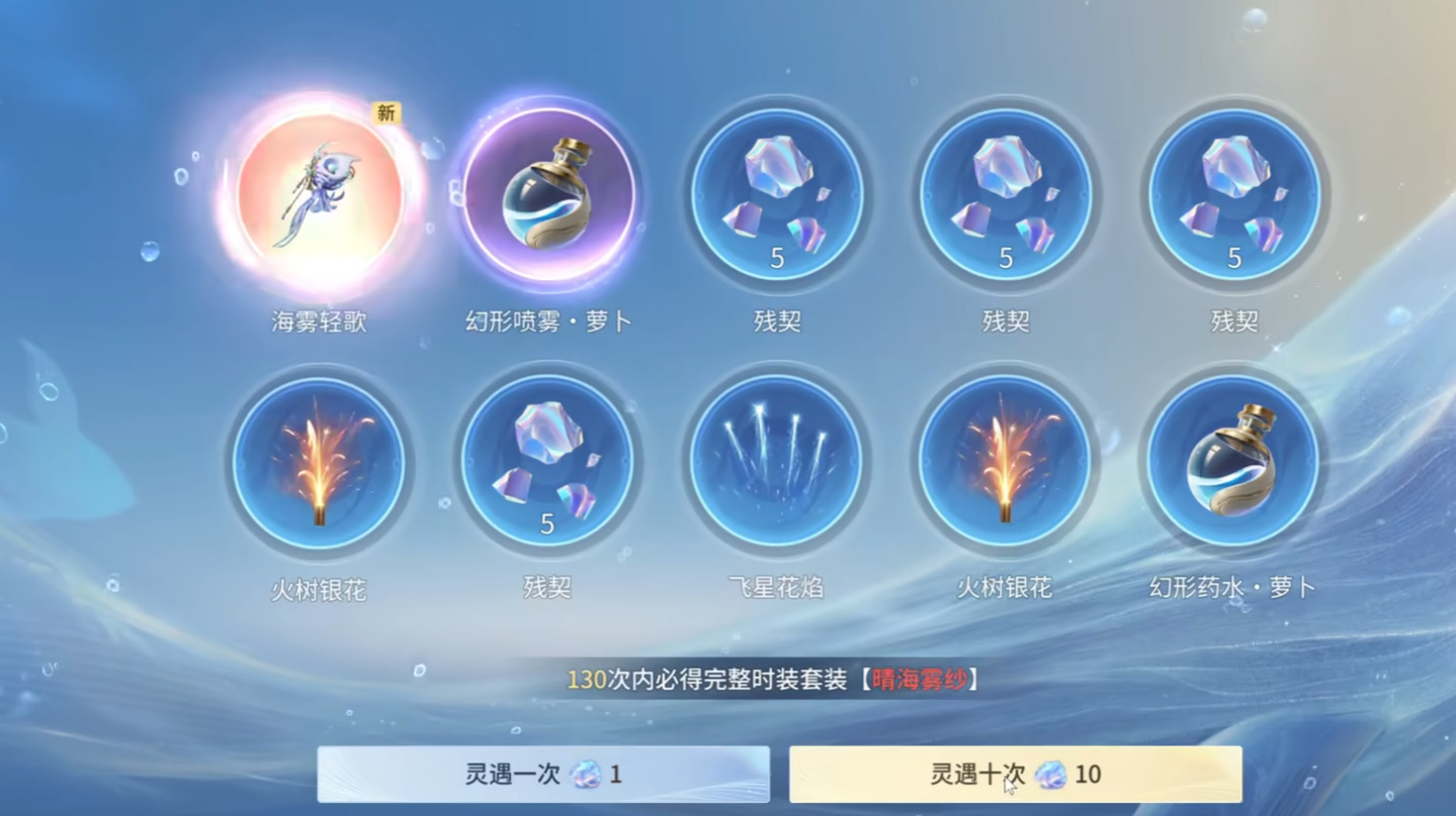 晴海雾纱皮肤仅可通过璇晶抽奖系统获取,不开放直售、碎片合成、活动兑换等任何替代途径。单次抽奖消耗150璇晶,按官方换算标准(1元=10璇晶),即单抽需15元。奖池内除皮肤本体外,还包含个性按键、全屏天幕等配套资源。
